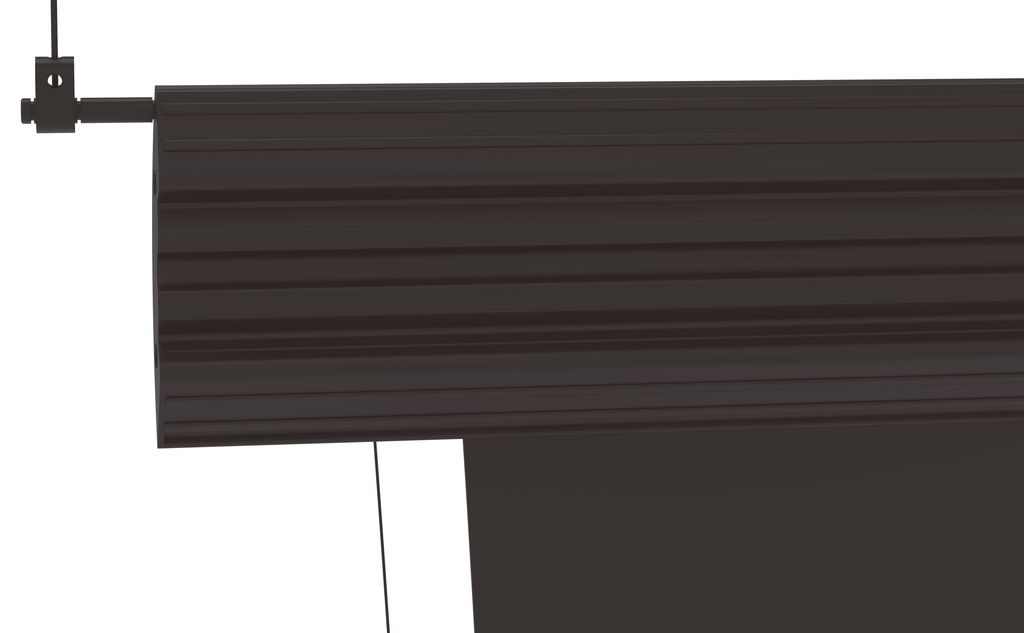 Особенностью данной серии проекционных экранов является увеличенный экстрадроп (верхнее черное поле и вытяжные тросы) – 5 метров.