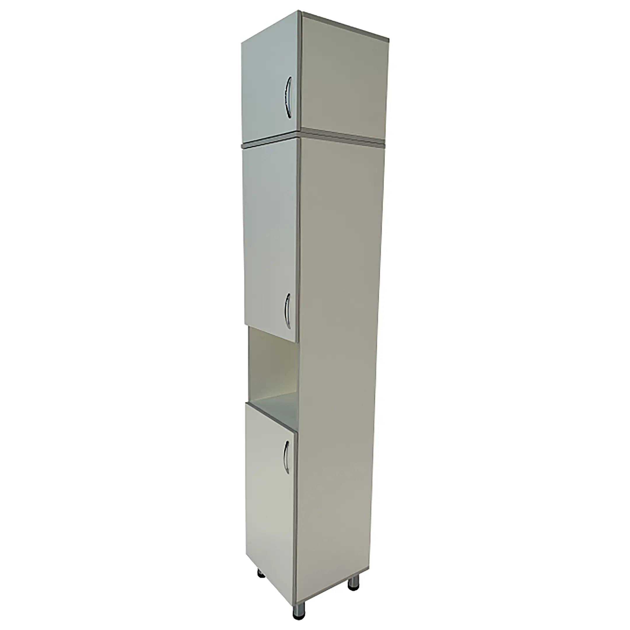 • Ниша шкафа разделена на отделения, что помогает эффективно организовать хранение и быстро находить необходимые материалы.
