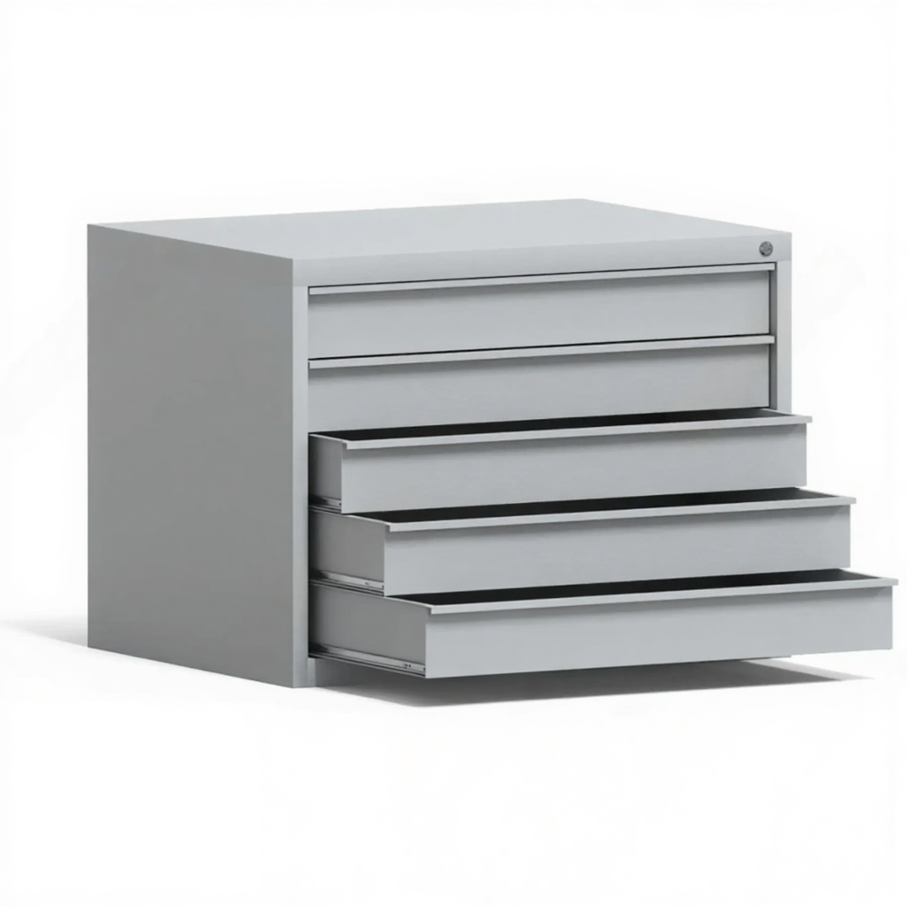 Шкаф картотечный ШКР-5, формат А0 — это специализированное и надежное решение для хранения, защиты и систематизации самых крупноформатных чертежей, карт, плакатов и технической документации в конструкторских бюро, архитектурных мастерских, картографических службах и учебных заведениях. Модель с пятью выдвижными планшетами обеспечивает безопасное горизонтальное хранение и удобный доступ к документам максимального стандартного формата А0.