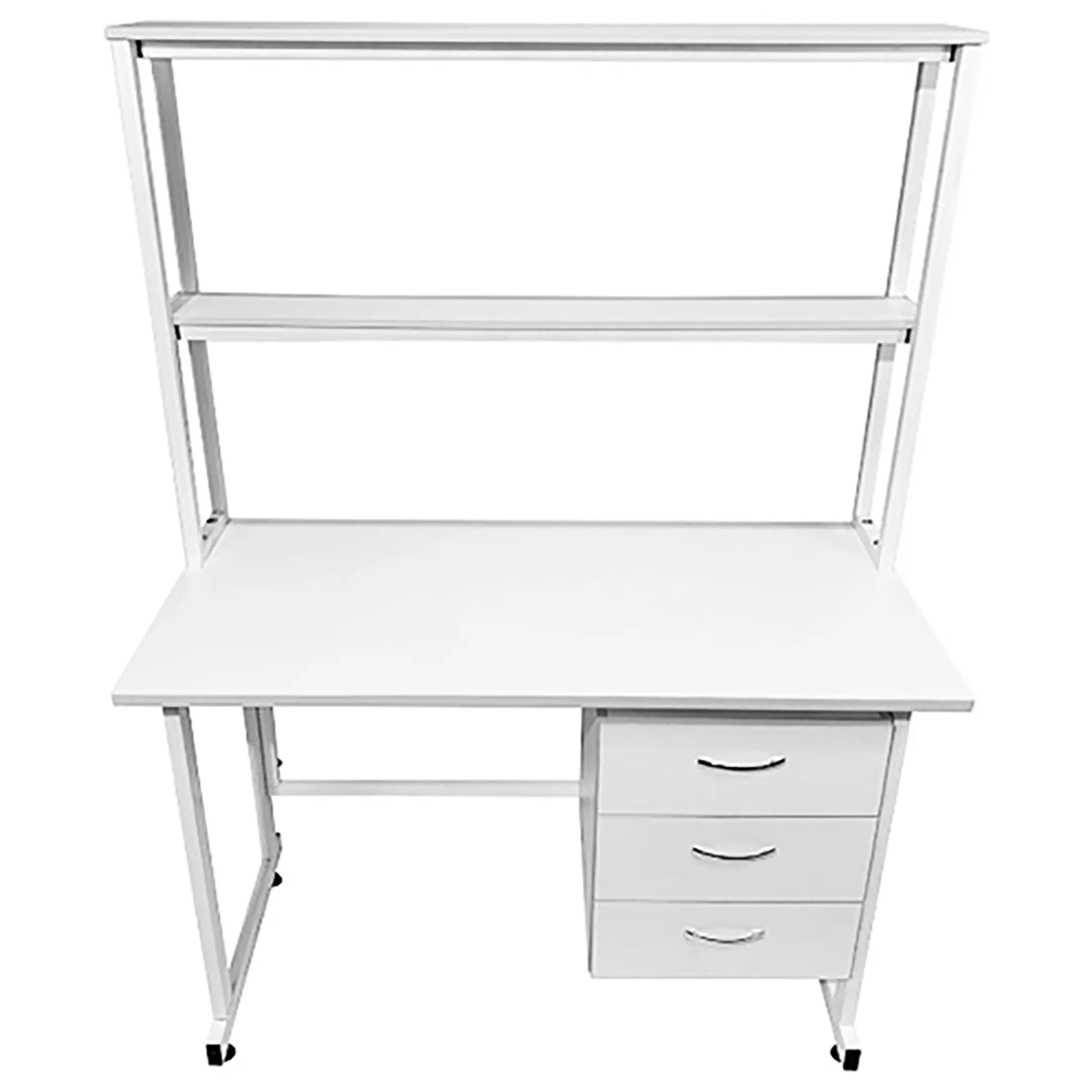 Стол лабораторный с надстройкой СЛн 16.004 (белый) — это оптимальное решение для организации рабочего места лаборанта, занимающегося проведением химических исследований в лабораториях и медицинских учреждениях. Модель оснащена подвесной тумбой с тремя выдвижными ящиками справа, надстройкой с двумя полками и металлическим защитным экраном. Каркас выполнен из стального профиля, столешница из ЛДСП толщиной 22 мм.