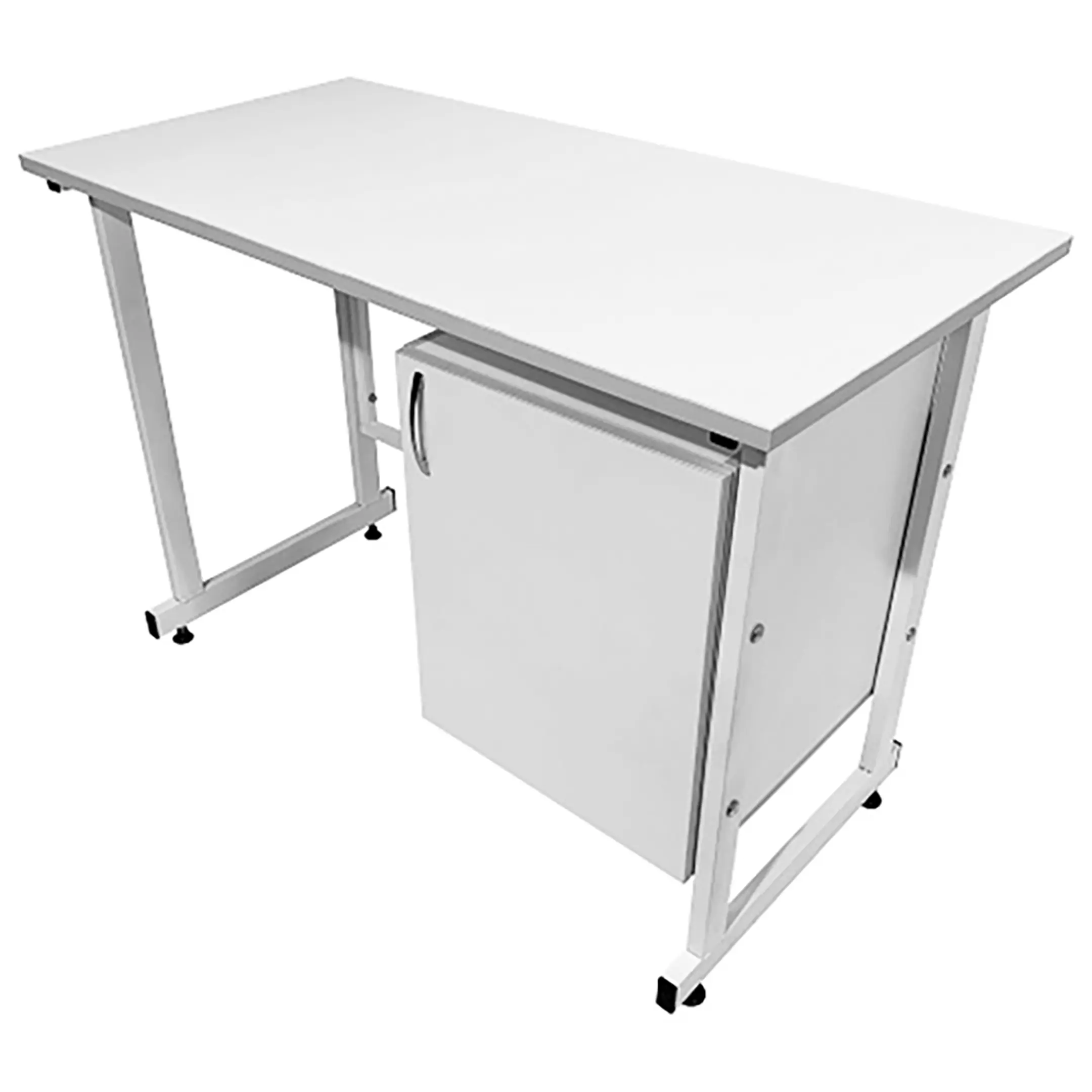 - Удобная система хранения — подвесная тумба справа с распашной дверкой и полкой для хранения материалов и инструментов.