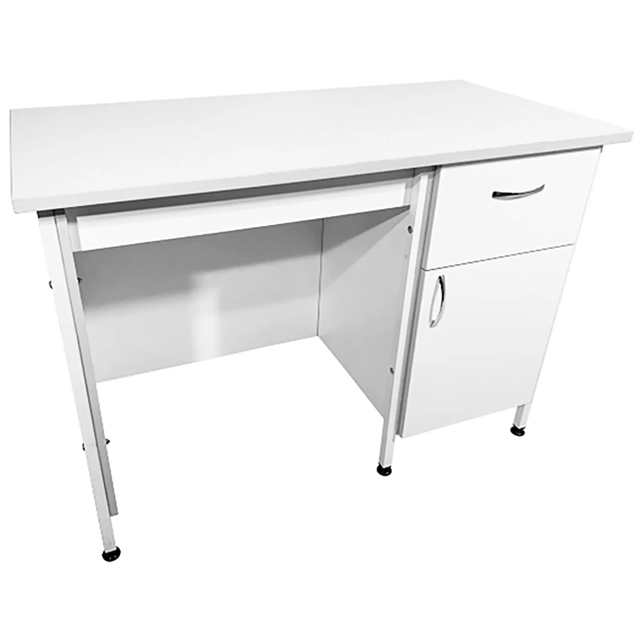 Стол лабораторный СЛ 12.013 (белый) является идеальным решением для организации рабочего места сотрудников в лабораториях и медицинских учреждениях. Модель оснащена тумбой с выдвижным ящиком, распашной дверкой и полкой внутри. Каркас выполнен из стального профиля, столешница из ЛДСП толщиной 22 мм.