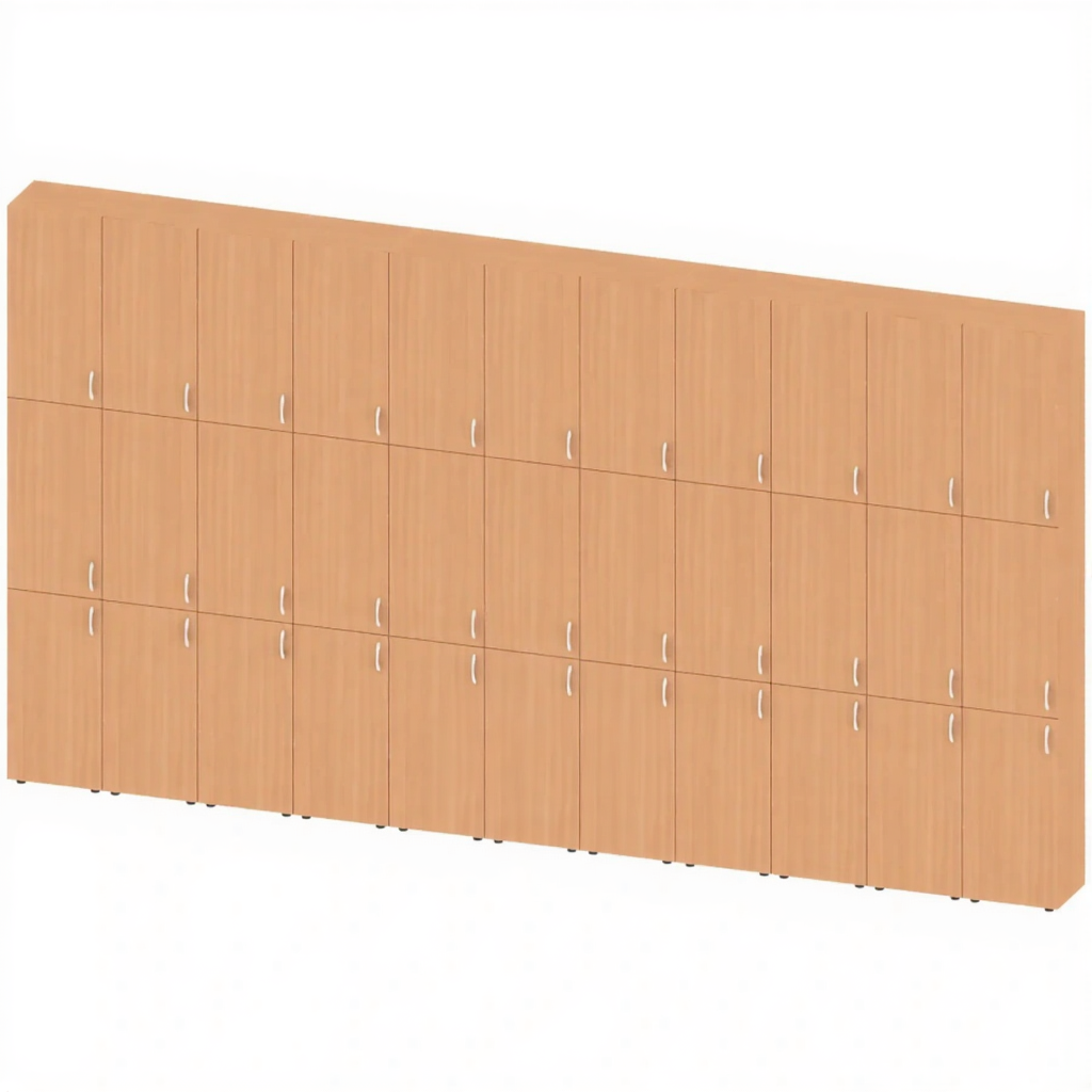 Шкаф многосекционный встраиваемый закрытый ШК-ТР-8, Бук Бавария Светлый — это функциональное решение для хранения вещей в образовательных, офисных, административных и других учреждениях. Модель представляет собой встраиваемую конструкцию с несколькими секциями, изготовленную из качественной ЛДСП цвета Бук Бавария Светлый с обработкой торцевых частей кромочной лентой ПВХ.