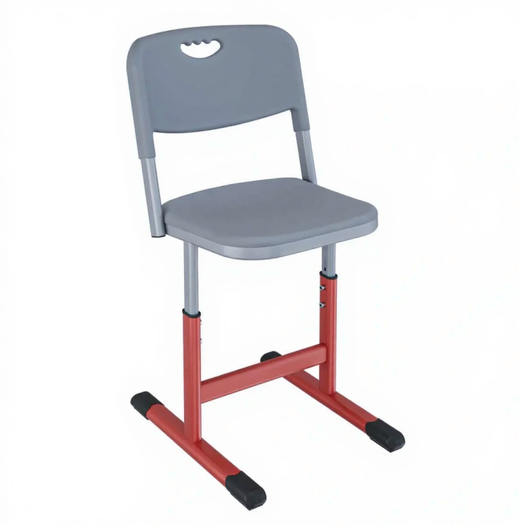 • Регулируемая высота — позволяет адаптировать стул под рост ученика и высоту стола, обеспечивая правильную посадку.