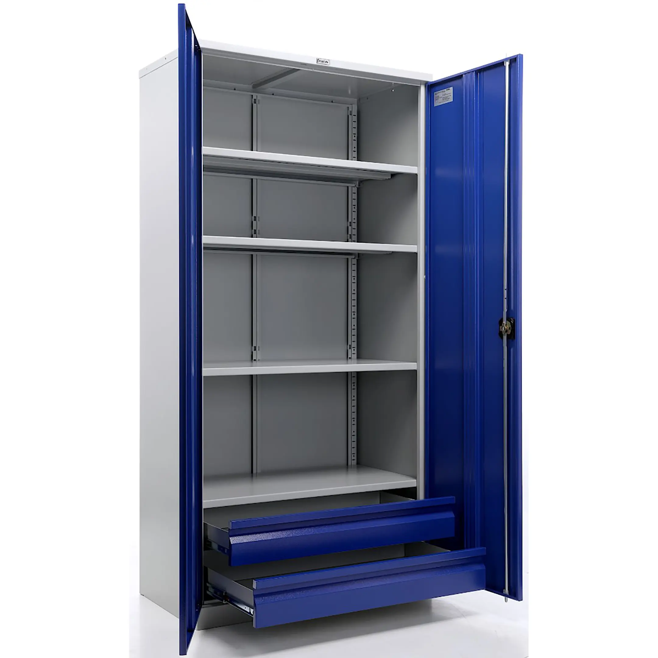 - Повышенная защита и безопасность — прочный корпус из стали повышенной толщины и усиленная конструкция дверей с надежной запорной системой (часто — центральный замок с несколькими точками запирания) обеспечивают максимальную защиту ценного инструмента от кражи и несанкционированного доступа.