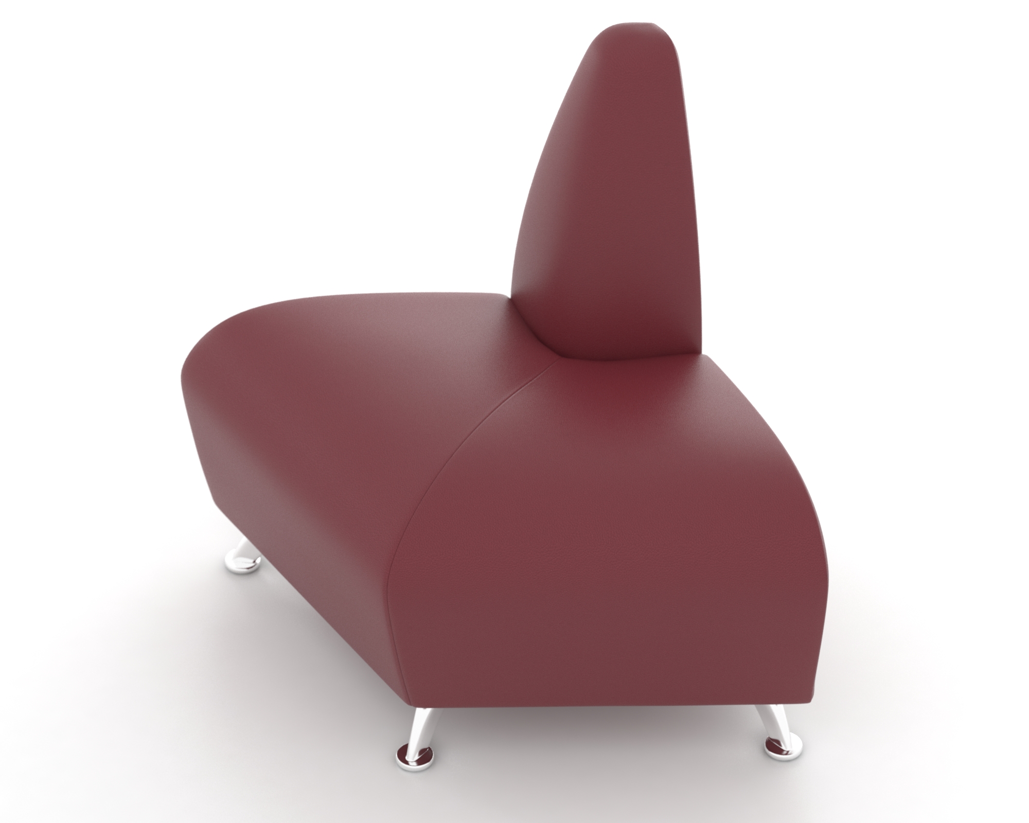 Угловая форма конструкции позволяет рационально использовать площадь помещения, обеспечивая дополнительную зону отдыха или рабочую площадку. Материалы хромированного цвета добавляют помещению современности и стильности, гармонируя практически с любыми типами интерьеров. Наружный модуль оснащен мягкими вставками, способствующими созданию атмосферы комфорта и удобства для посетителей.