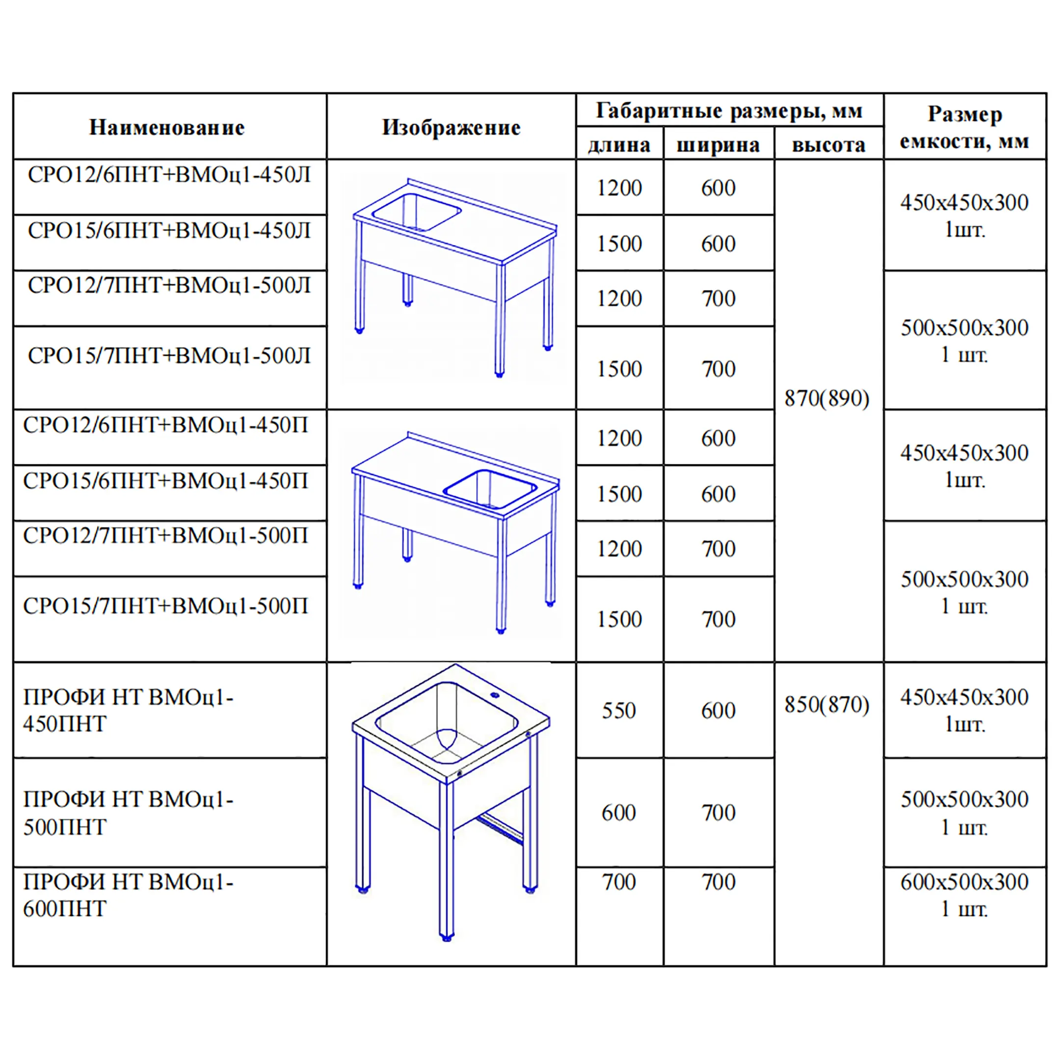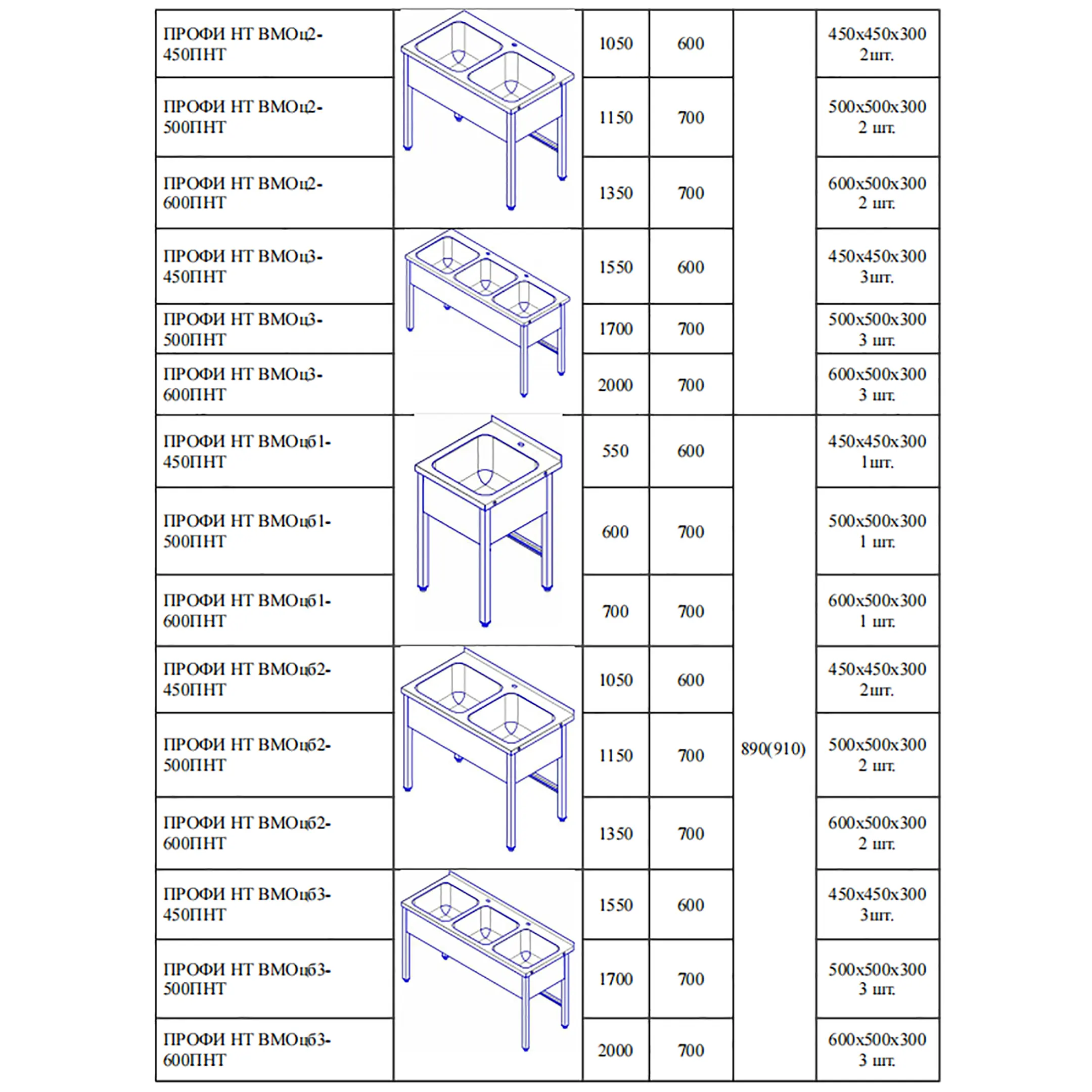Ванна моечная цельнотянутая ПРОФИ ВМОцб3-600ПНТ