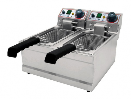 Электрическая фритюрница производства Beckers (Италия) предназначена для обжаривания разнообразных продуктов (картофель, мясо, рыба, овощи и фрукты в кляре) в разогретом до определенной температуры, растительном или животном масле (фритюре). Фритюрница с двумя ваннами, вместимостью 4 л каждая, изготовленными из нержавеющей стали. Ванны имеют отличную прочность и долговечность, а также, благодаря скругленным углам, их очень легко чистить. Корзина имеет удобную ручку, выполненную из термостойкого материала. Фритюрница отличается компактностью и быстродействием. Наличие двух ванн позволяет готовить разные продукты одновременно без смешивания запахов. Аппарат оснащен электромеханической панелью управления. Кроме того, модель оснащена специальным микровыключетелем, который не допустит нагрева ванны, если в ней нет масла.