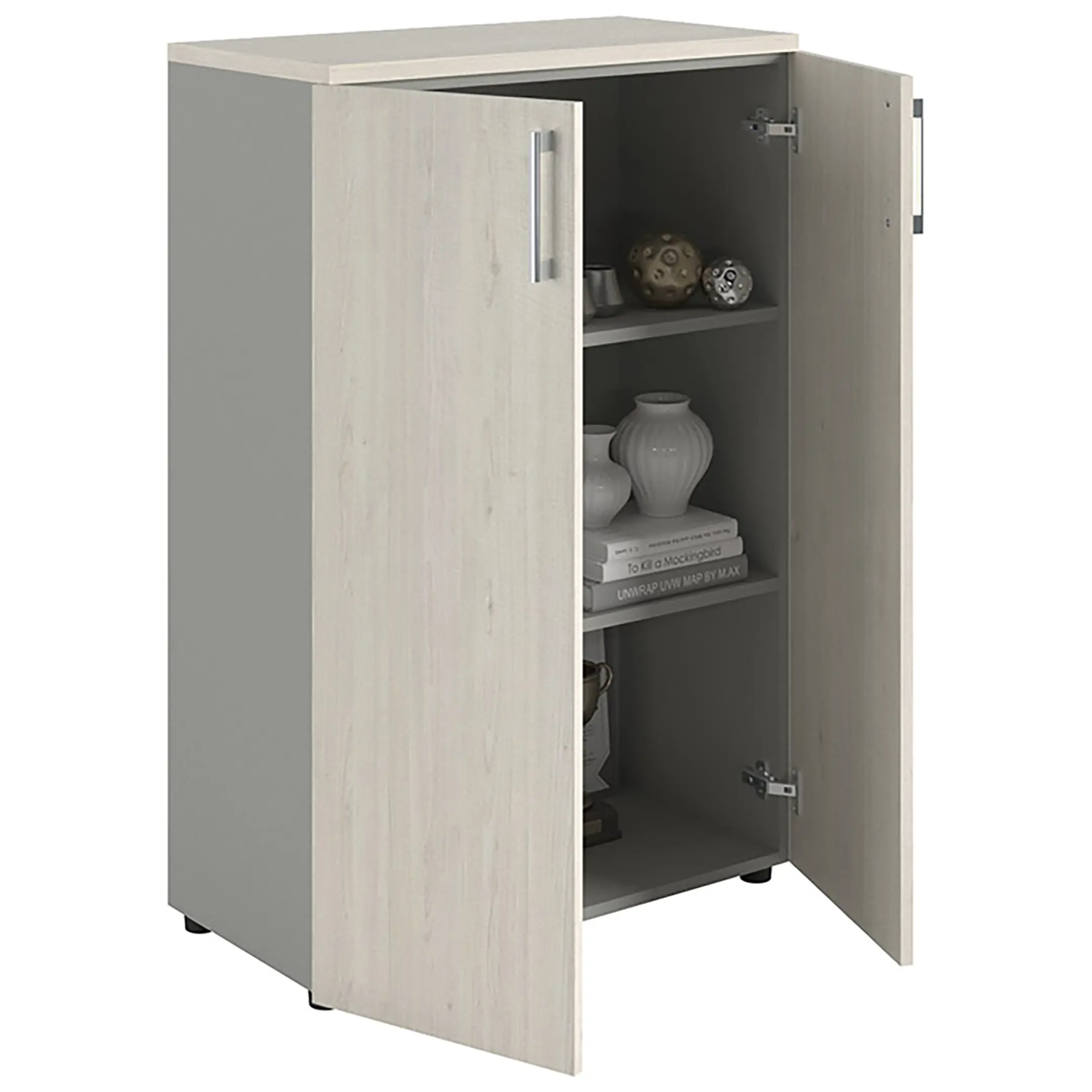 Шкаф NW 1280 закрытый белое дерево/серый предназначен для хранения.