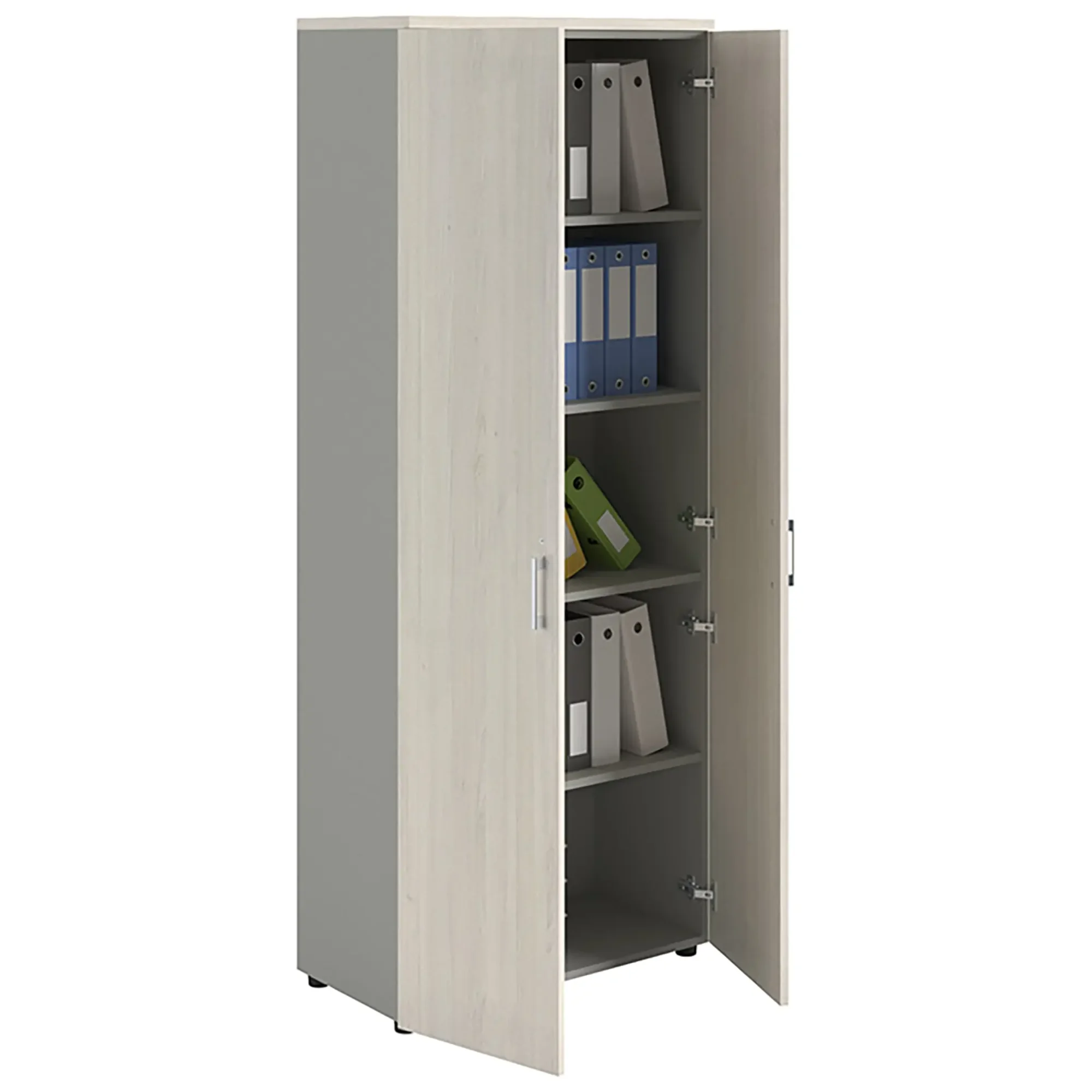 Шкаф NW 2080 закрытый белое дерево/серый предназначен для хранения.