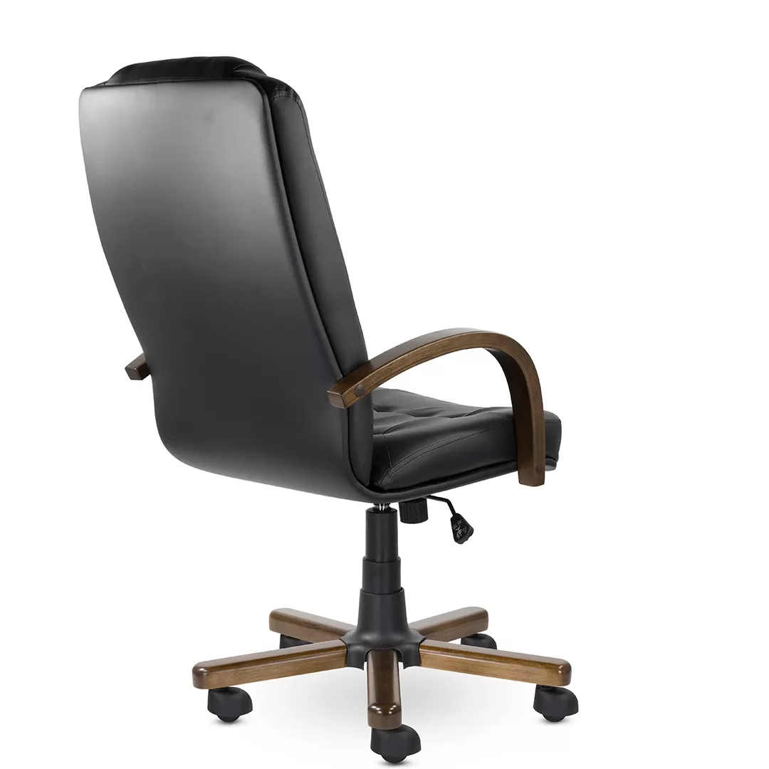 Кресло K‑41 Кендо В дерево — стильное и солидное офисное кресло руководителя с высокой спинкой, выразительным подголовником и декоративными деревянными элементами. Модель сочетает презентабельный дизайн, комфортную посадку и надёжную конструкцию, что делает её подходящим решением для кабинетов, переговорных и рабочих зон.