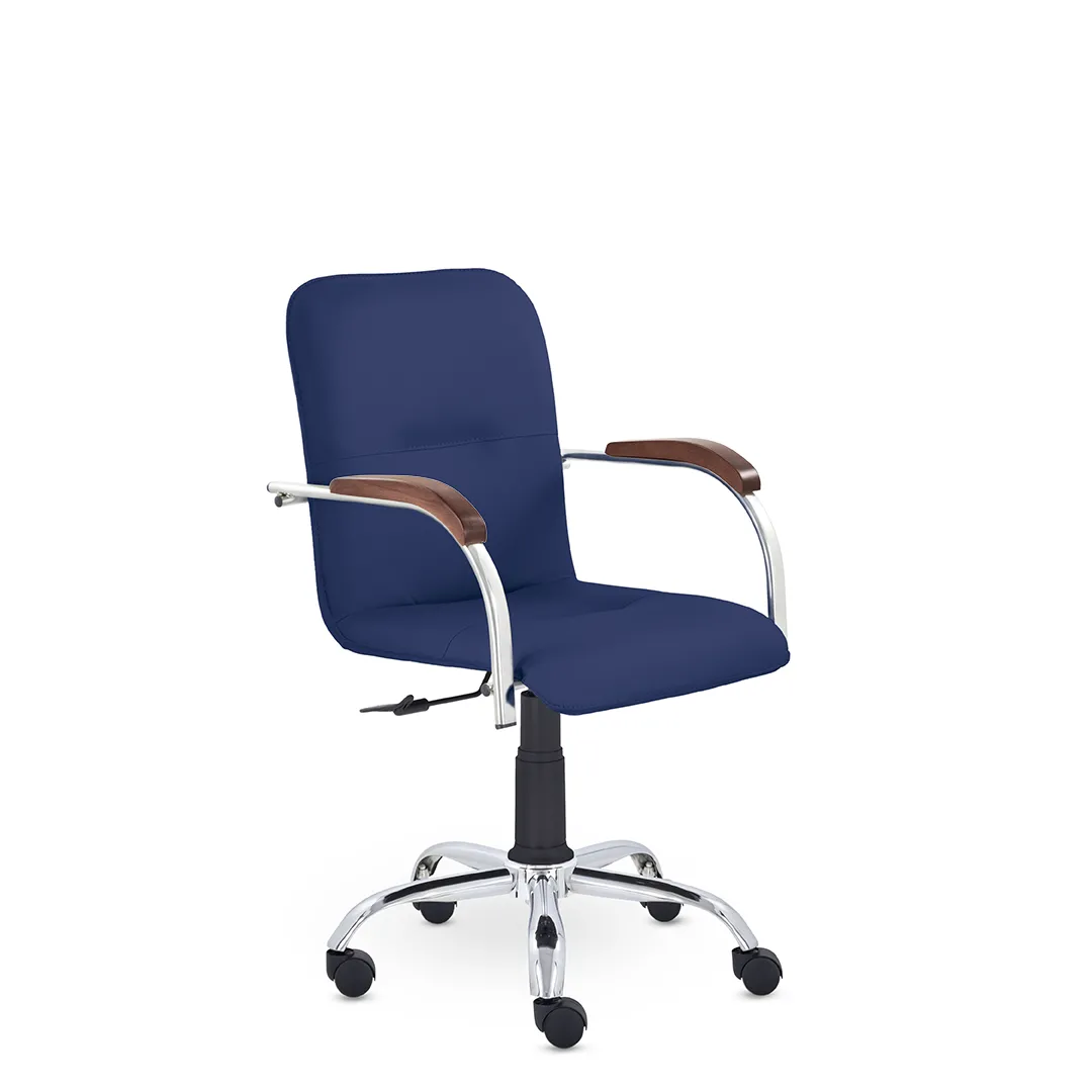 - Эргономичная посадка — спинка с поддержкой поясницы и удобное сиденье обеспечивают комфорт при длительной работе или совещаниях.