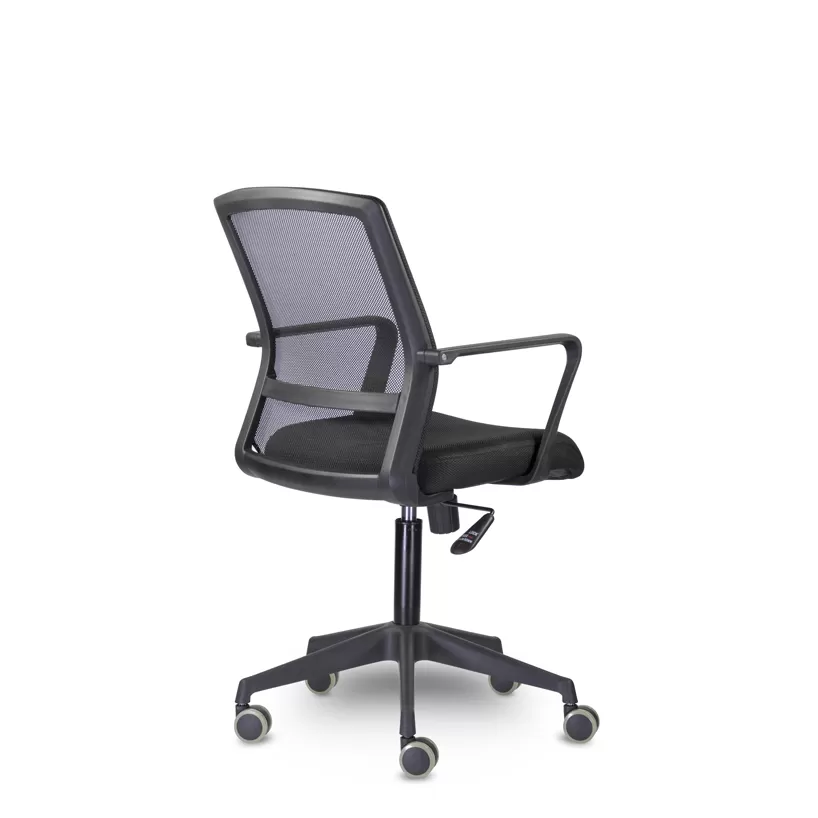 - Эргономичная спинка для комфорта — широкая спинка анатомической формы обеспечивает удобную поддержку спины во время длительных занятий или совещаний, способствуя правильной посадке.