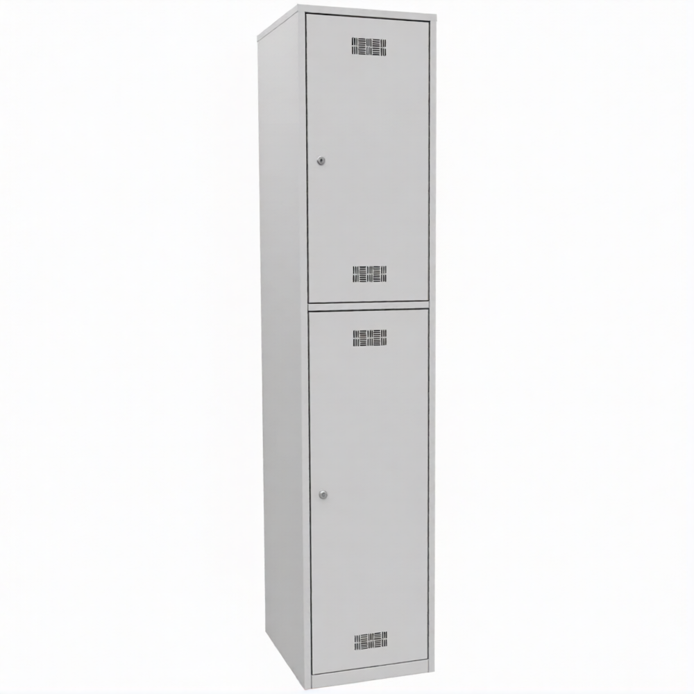 • Шкаф металлический для хранения одежды и обуви на 2 отделения с полками под обувь. Состоит из двух секций.