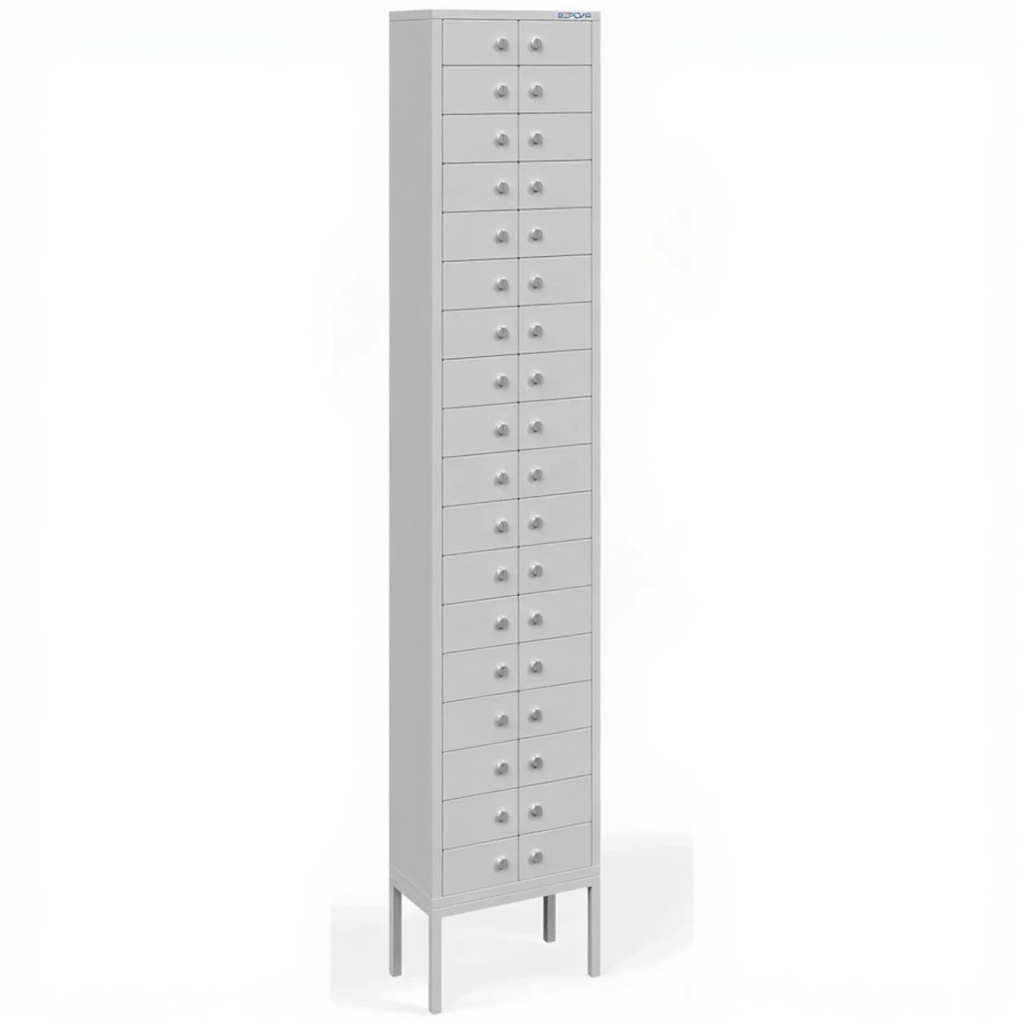 Шкаф для телефонов ШТ-36-П (36 ячеек) с подставкой — это комплексное эргономичное решение, состоящее из вместительного шкафа на 36 ячеек и удобной стационарной подставки. Комплект предназначен для организованного хранения мобильных устройств в учебных классах, офисах и общественных местах, обеспечивая оптимальную высоту для доступа, мобильность и профессиональный внешний вид.