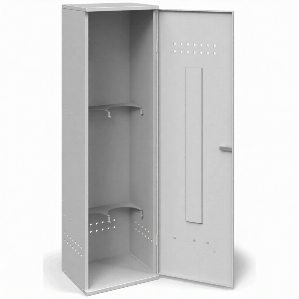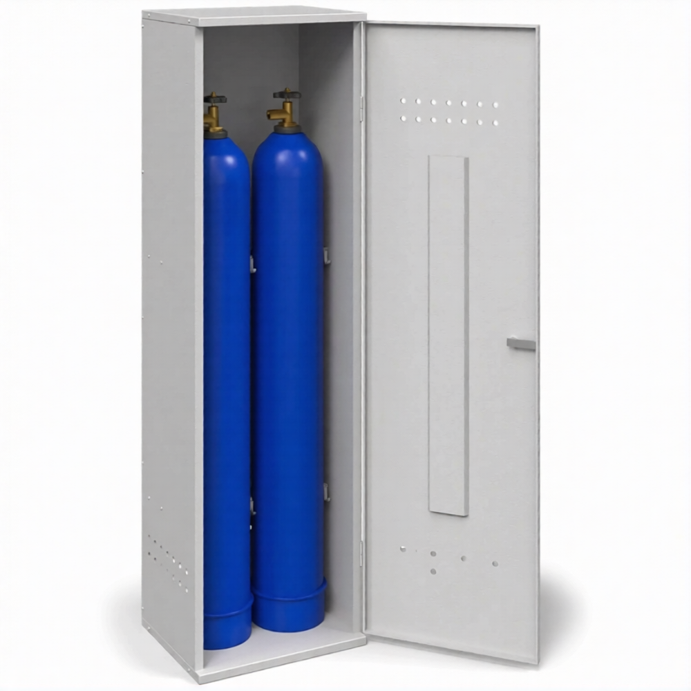 - Обеспечение базовых требований пожарной безопасности — металлический корпус толщиной 1,2 мм обеспечивает необходимую изоляцию баллонов от случайных источников возгорания и искр. Конструкция предусматривает вентиляционные отверстия для естественного воздухообмена, что помогает рассеивать возможные утечки газа и снижает риск создания опасной концентрации, отвечая ключевым требованиям ППР для бытовых и полупромышленных условий.