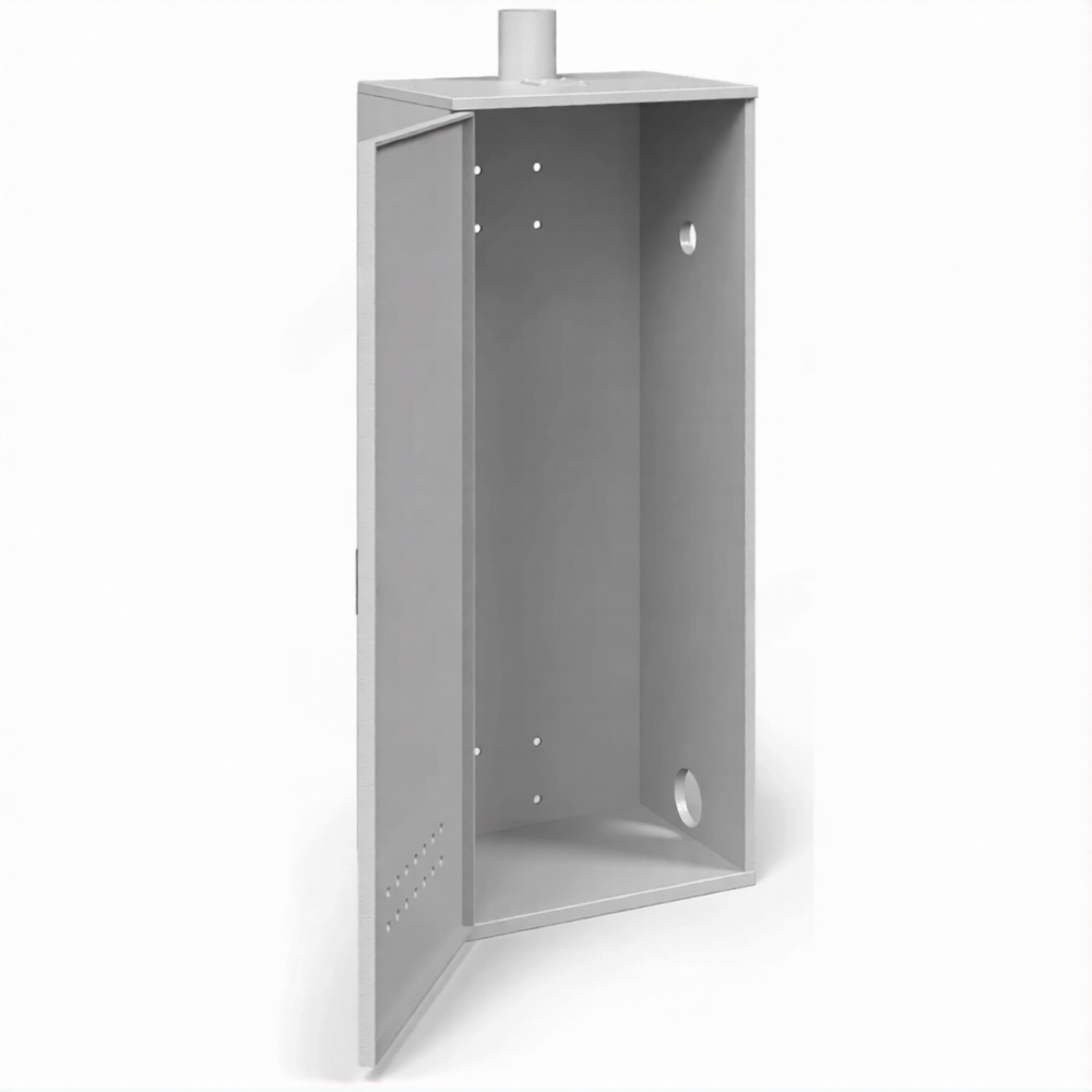 Шкаф с патрубком для баллона 50 литров, сварной, усиленный (толщина 1.2 мм) — это профессиональное, надежное и функциональное решение для безопасного хранения и эксплуатации крупногабаритных 50-литровых газовых баллонов на производственных участках, строительных площадках, в сельском хозяйстве и на промышленных объектах. Модель представляет собой сварной усиленный стальной шкаф, изготовленный из листа толщиной 1,2 мм. Его ключевая конструктивная особенность — встроенный выводной патрубок — позволяет вывести газовый шланг (рукав) наружу без открывания дверцы, обеспечивая постоянное и безопасное подключение баллона к потребителю. Конструкция разработана для безусловного соблюдения правил пожарной и промышленной безопасности при работе с большими объемами газа.
