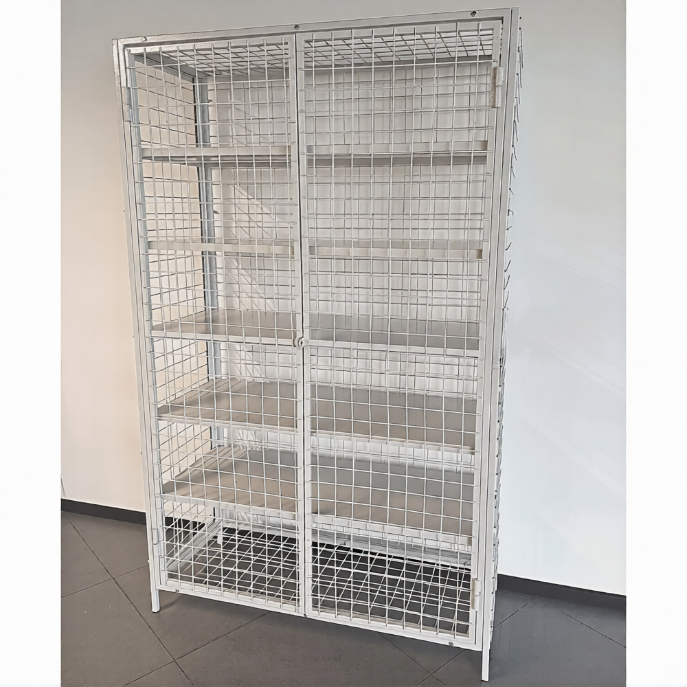 • Металлический сетчатый шкаф - стеллаж предназначен для хранения различного вида спортивного или любого другого инвентаря, товаров, инструментов, любого вида продукции на производствах, складах, предприятиях, в ученых заведениях.