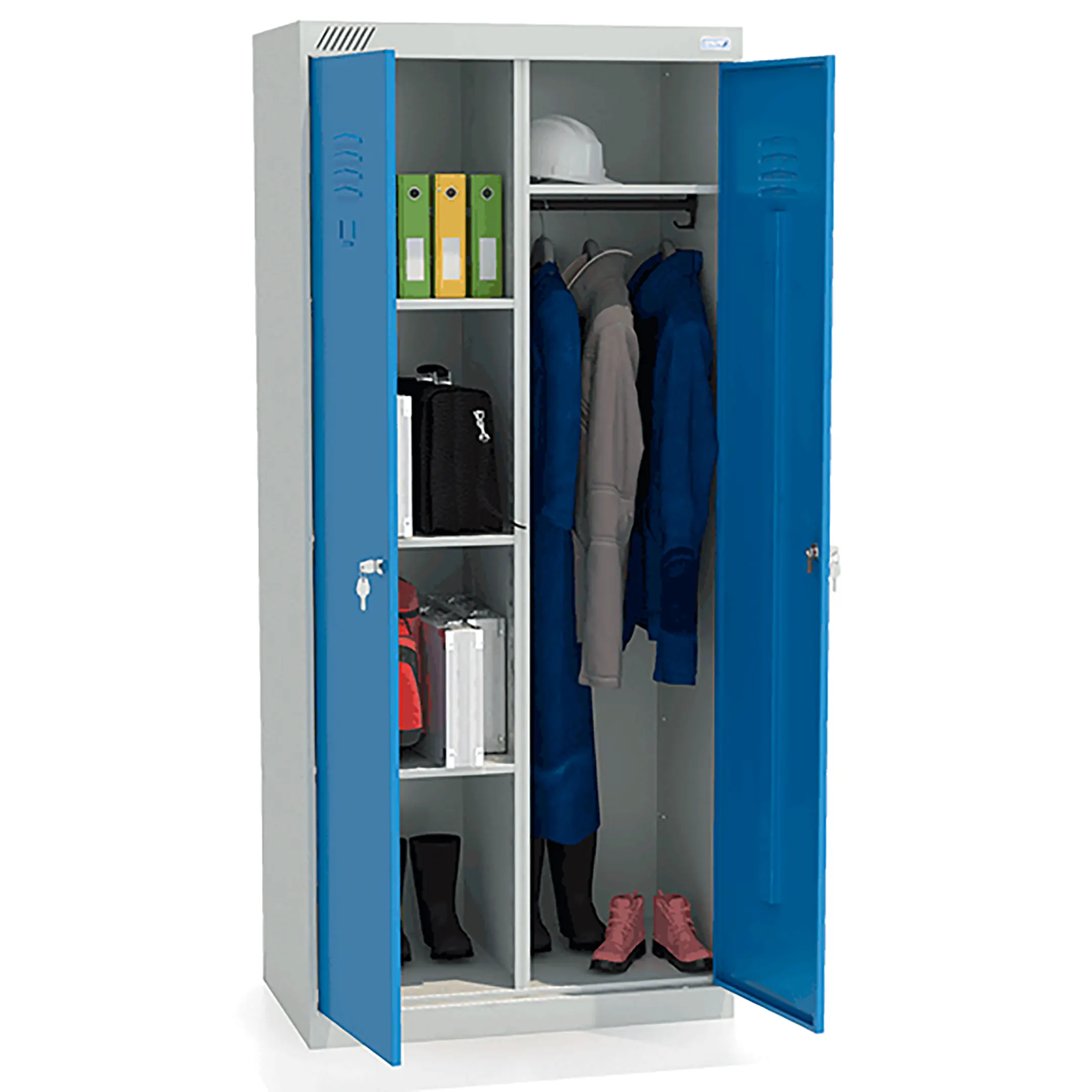 - Надежная конструкция для интенсивной эксплуатации — шкаф изготовлен из качественных материалов, обеспечивающих долговечность и устойчивость к ежедневным нагрузкам. Прочные полки и надежные замки гарантируют сохранность содержимого в условиях активного использования.